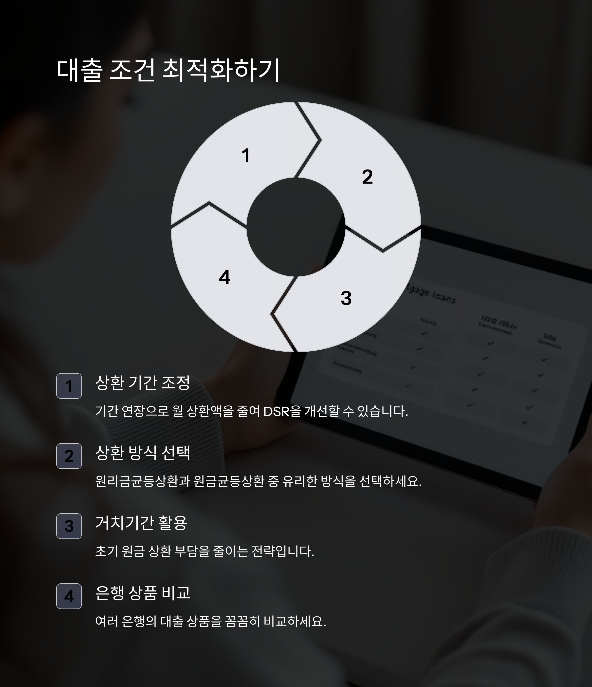 | 대출 조건 최적화 | 월 상환액 감소, DSR 개선 | 즉시 | 총 이자 부담 증가 가능성 |