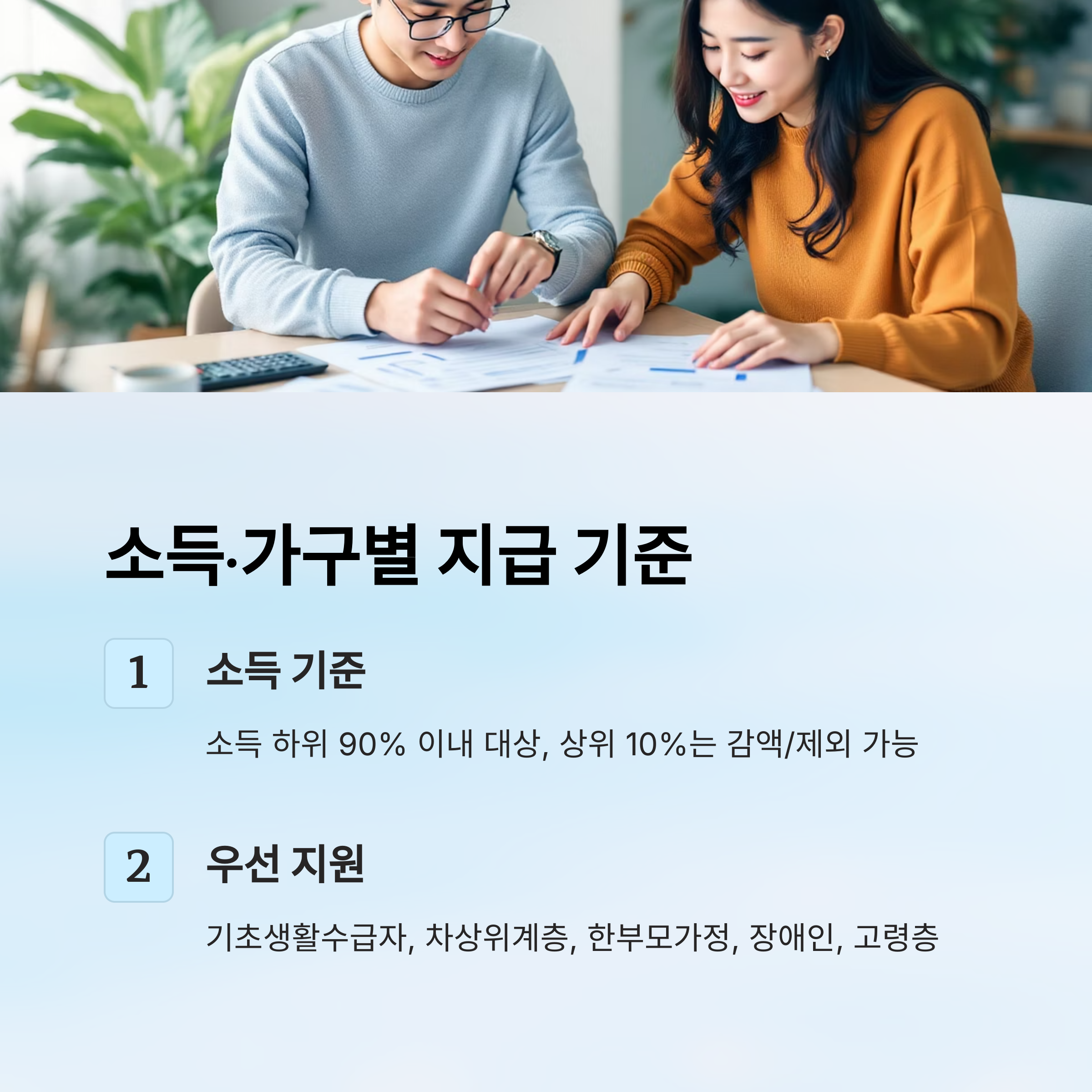 제가 직접 건강보험료 고지서를 들여다보며 확인한 결과, 소득 하위 90% 이내면 2차 추가 지급 대상이 돼요. 기초생활수급자, 차상위계층, 한부모가정, 농어촌 인구감소지역 주민 등은 추가 지원이 가능하고, 소득 상위 10%는 일부 감액 또는 제외될 수 있습니다.