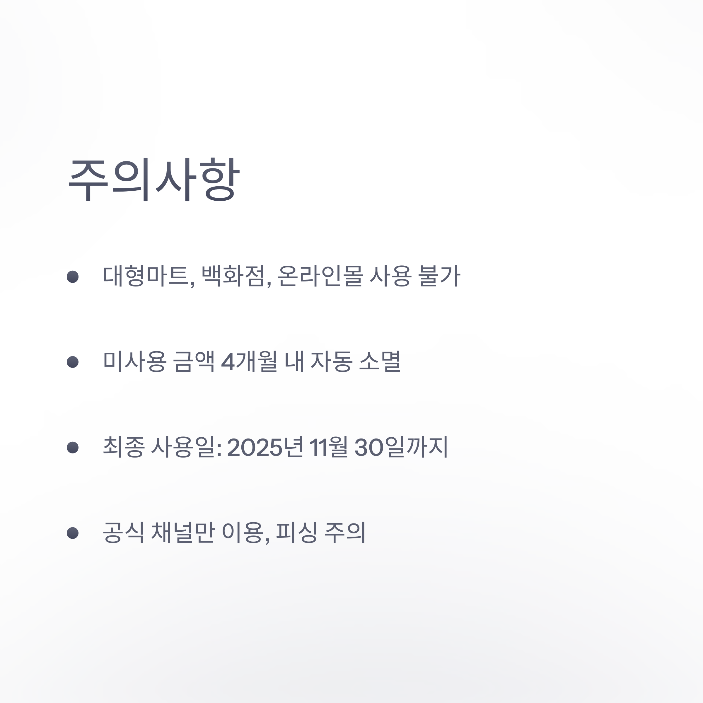 - 사용 기한은 지급일로부터 4개월, 최종 사용일은 2025년 11월 30일까지