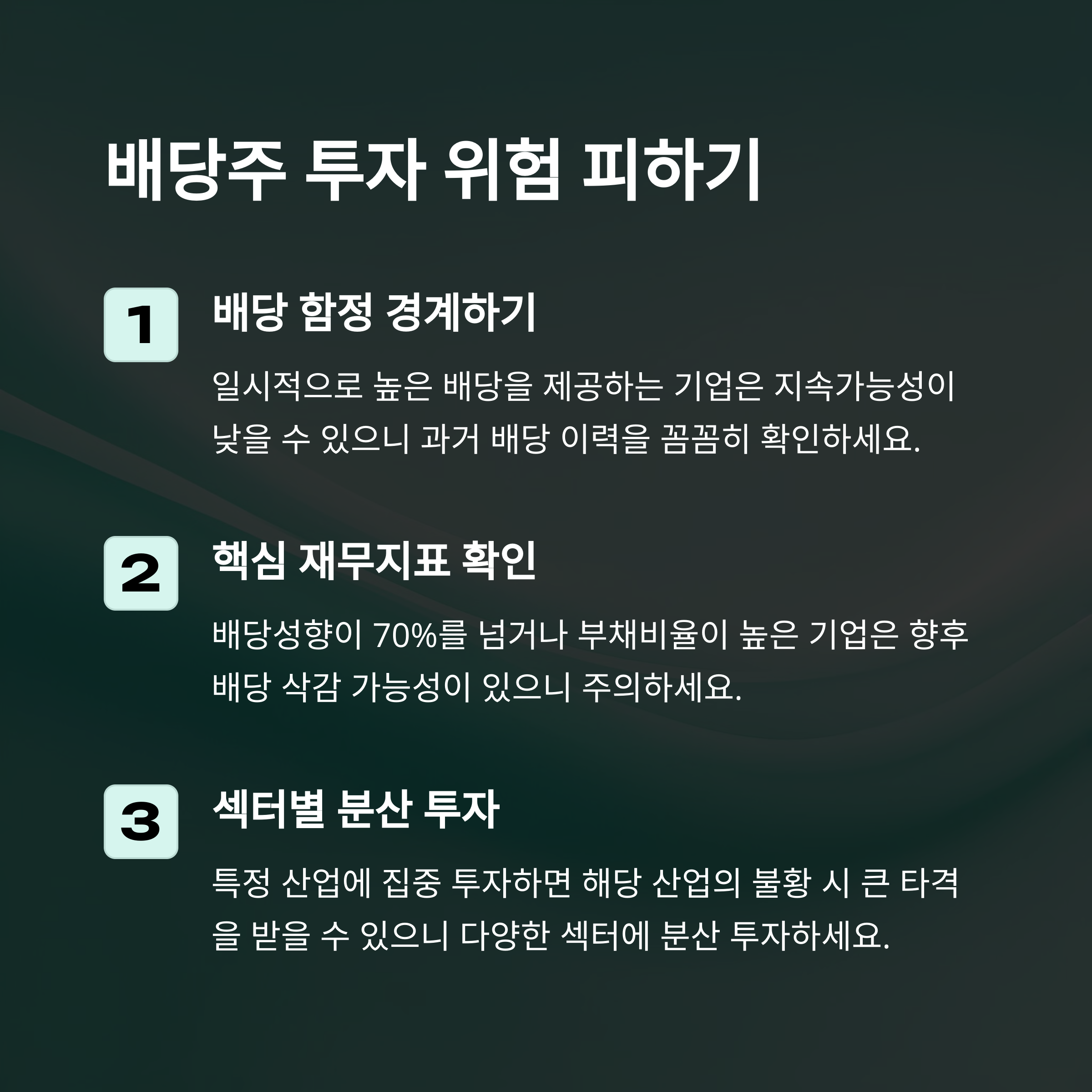 고배당주 투자가 안정적인 수익을 제공하는 것은 사실이지만, 모든 투자에는 위험이 따릅니다. 월 100만원의 배당금을 안정적으로 유지하기 위해서는 철저한 위험 관리가 필수적입니다.