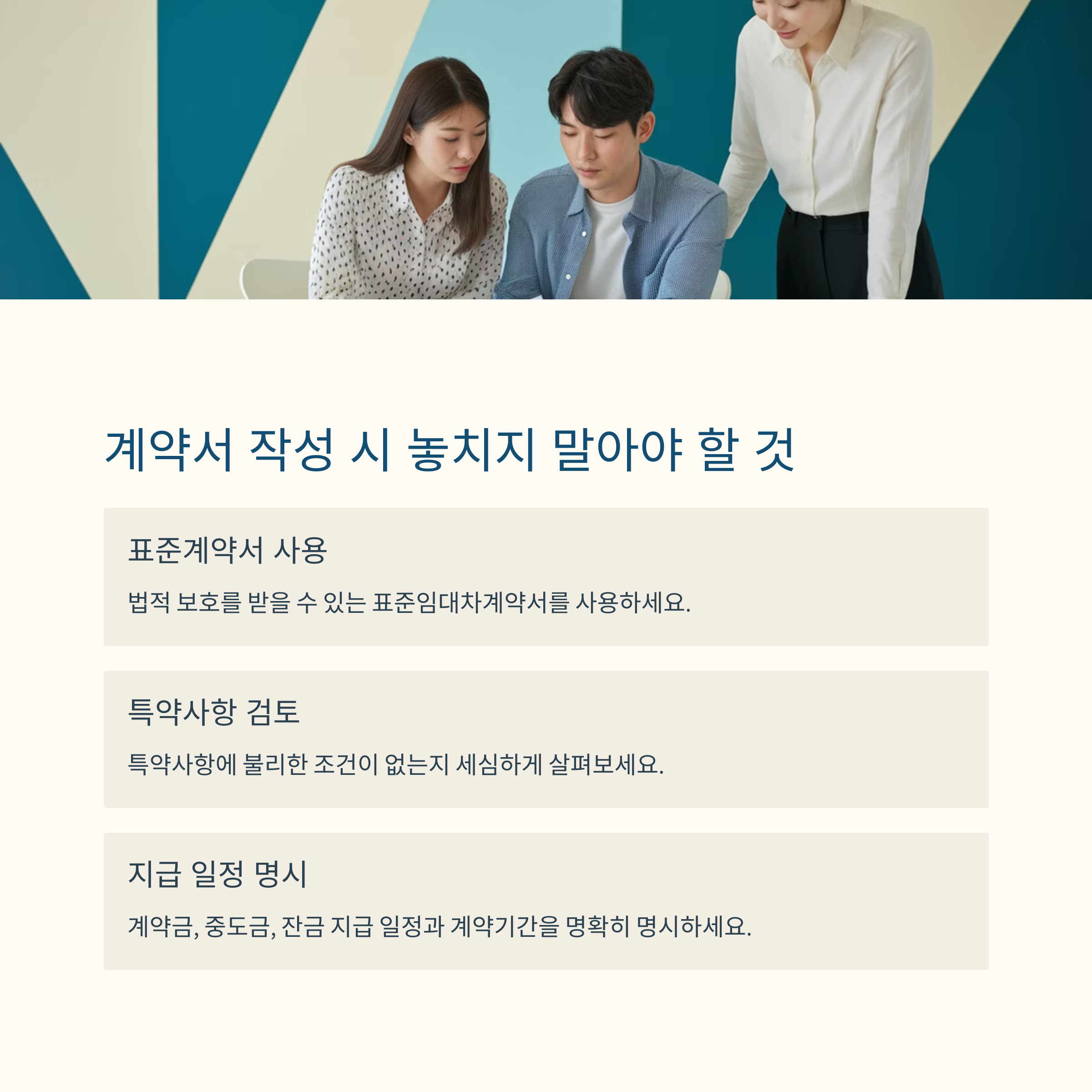 - 특약사항 추가: 수리 책임, 관리비 부담 주체, 계약 해지 조건 등을 구체적으로 명시하세요. 특히 노후 주택의 경우 하자 발생 시 수리 책임을 명확히 하는 것이 중요합니다.